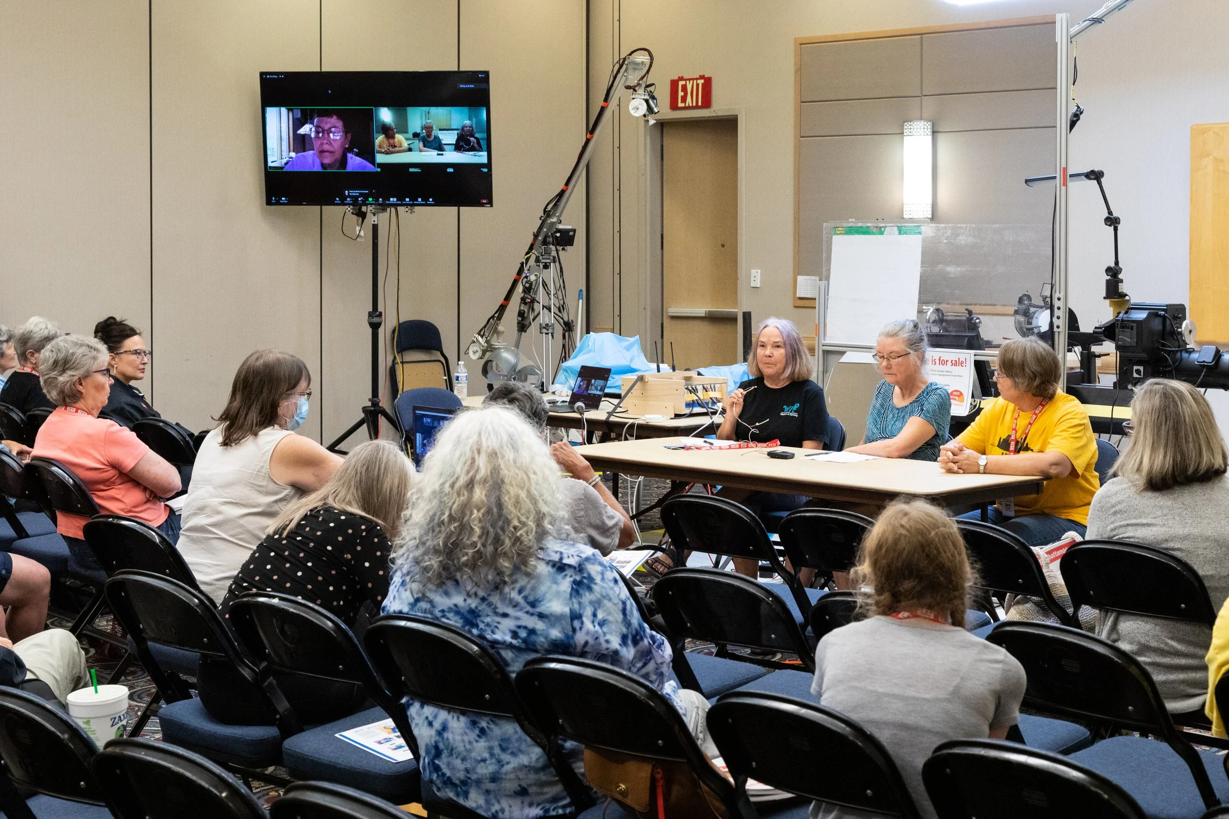 There are lots of differences, of course. Glassblowing often requires a team of craftspeople to complete a project, and the person who designs the piece is considered the artist. This is a concept that is foreign to woodturners. In woodturning, the designer is usually the sole maker involved in creating a piece. The way the material is rotated is also completely different. For example, in woodturning the lathe rotates the material towards the turner while he or she applies the tool - using both hands - to make a form. In glass blowing, the gaffer (the one sitting at the bench) or an assistant turns the pipe or rod holding the hot glass while the gaffer uses a tool to shape the material. The pipe or rod is rotated toward and away from the gaffer, using the left hand, while the right hand uses the tool on the hot glass, which is hanging off the end of the pipe or rod. Hot glass has to be kept in motion or the glass can drop onto the floor or become a misshapened mess. Wood secured on the lathe is much better behaved than liquid glass on a blowpipe.
