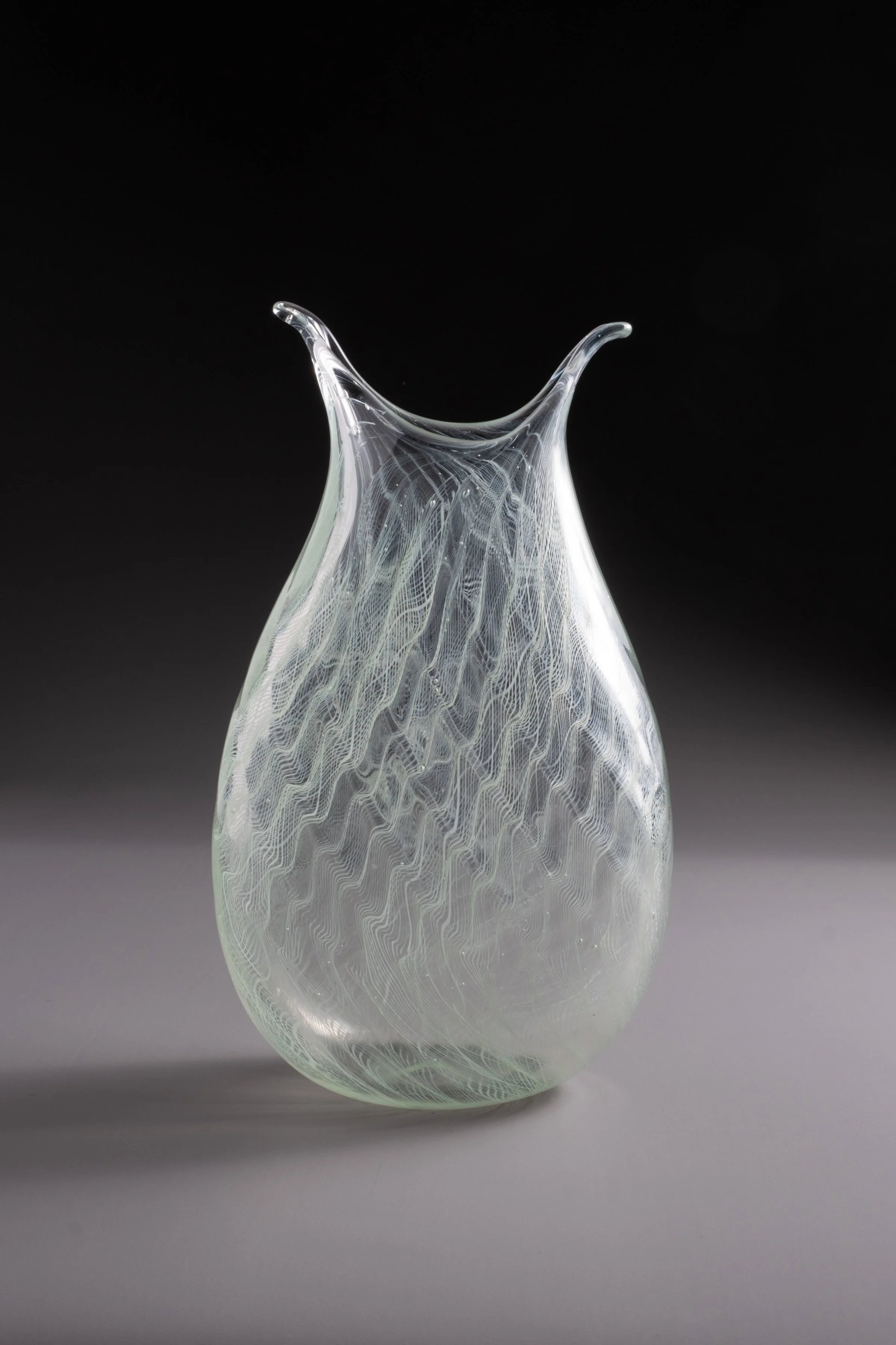 To make a hollowform in woodturning, the maker removes the material from the inside of the wood blank using specialized tools. A hollowform in glass is formed by blowing a bubble into molten material, which then hardens as it cools. Woodturning is a subtractive process - removing wood to make a shape. Glassblowing is an additive process - gathering material from the furnace and adding it to the pipe or the form that is in the process of being made.